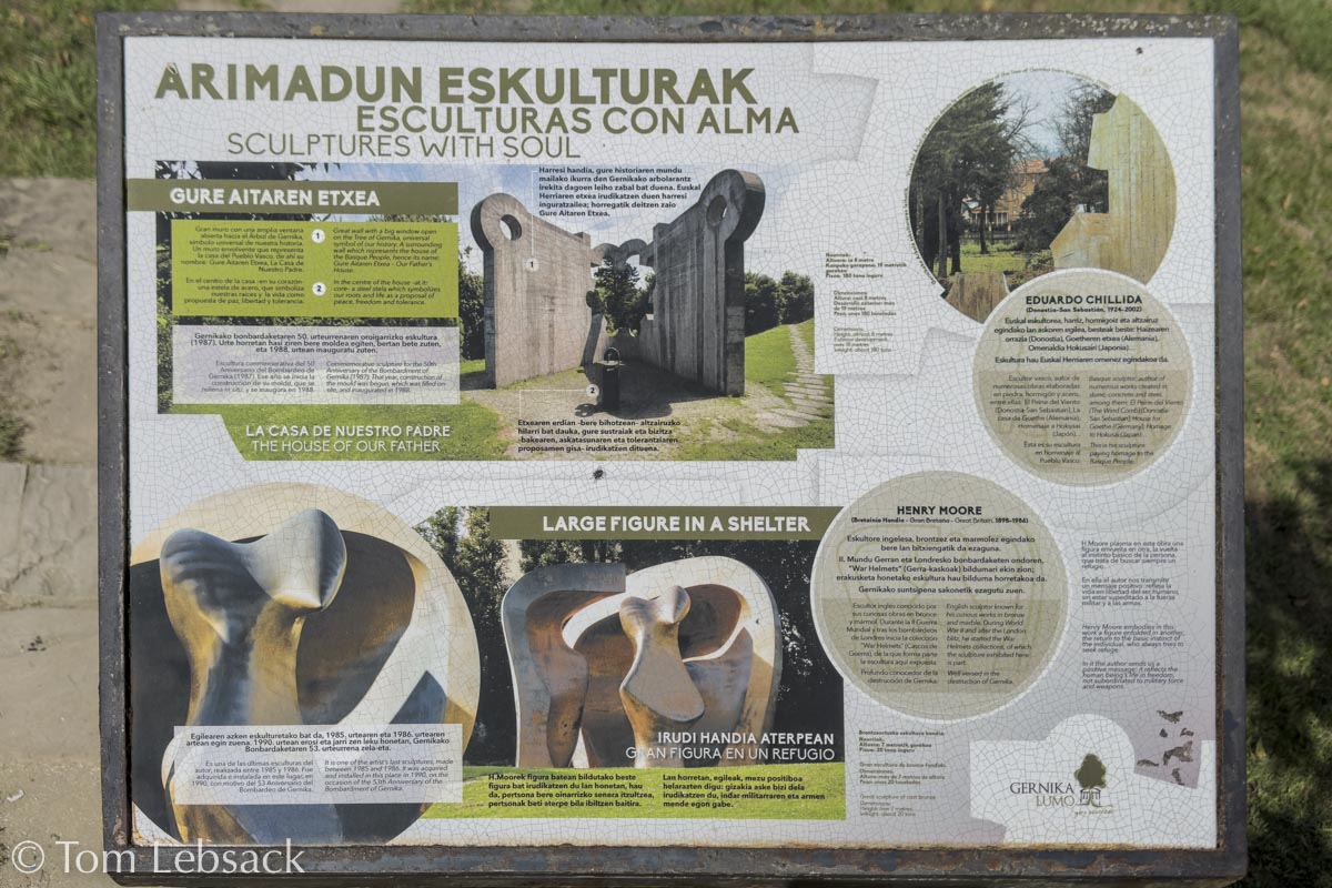 Another small city in the area is Gernika (or Guernica). From the Middle Ages, the town, like others in Basque Country, traditionally handled their local affairs democratically with a type of parliament. In Gernika’s case meetings were held from at least the 14th century and for many years after under a large oak tree. Later, meetings took place in a purpose-built structure, the most recent being The Assembly House built in 1833 on the grounds of the tree. The tree remains the symbol of the traditional freedoms of the Basque people and the continuity of their culture. (Of course, the original tree and all of its successors are long gone, but a new one is growing on the grounds.)
